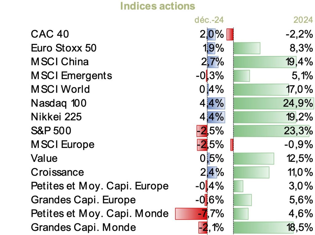 En 2024, les marchés actions mondiaux ont connu une année exceptionnelle :