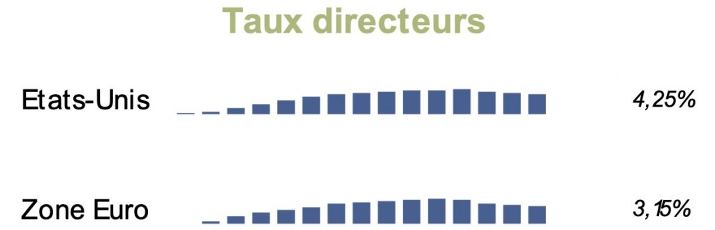 En 2024, l’économie mondiale a fait preuve de résilience malgré une inflation en ralentissement, mais toujours au-dessus des objectifs de long terme fixés par les banques centrales. Ces dernières ont néanmoins amorcé un assouplissement de leur politique monétaire avec 4 baisses de taux en Europe et 3 aux Etats-Unis.  Cependant, cette vue d’ensemble masque des disparités importantes, tant sur le plan de l’activité économique que des pressions inflationnistes.