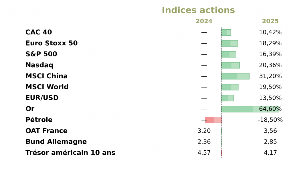 Sur les marchés actions en 2025, on retiendra :